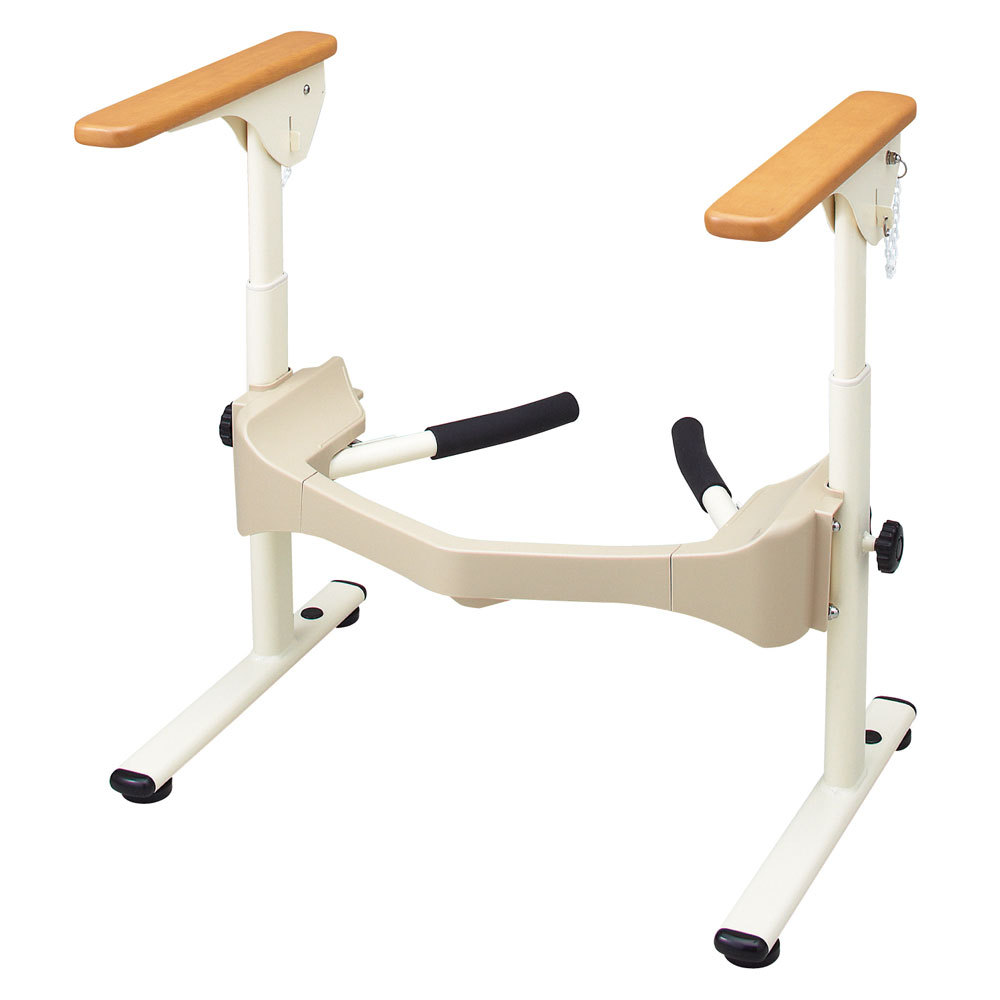 立ち上がりしやすい、ひじ掛け・本体形状の木製ひじ掛けタイプの洋式トイレ用フレームです。