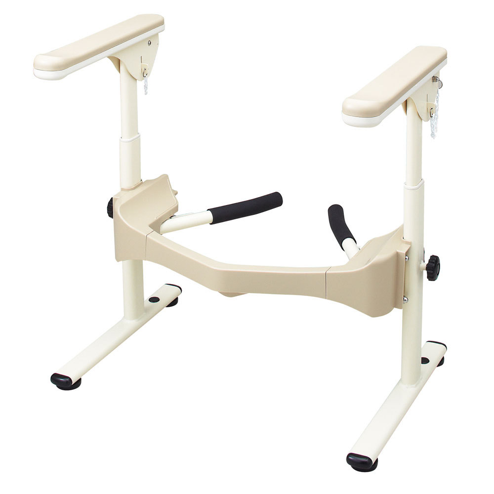 立ち上がりしやすい、ひじ掛け・本体形状のプラスチックひじ掛けタイプの洋式トイレ用フレームです。