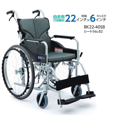 【非課税】BACKS(バックス) 自走介助兼用車椅子 BK22-40SB 背張り調整可能シンプル背折れ車いすカワムラサイクルは、アルミ製の標準車いすにチャコールグレーの「クッション」が標準装備。 自走用(介助兼用)車椅子 です。