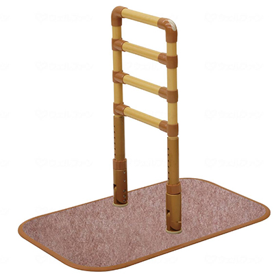 | 材質 | 手すり:ステンレス鋼管樹脂厚肉被覆 ベース:スチールメラミン焼付塗装 その他:合成ゴム、ステンレス鋼管焼付塗装、アルミダイキャスト ベースマット:不織布 |