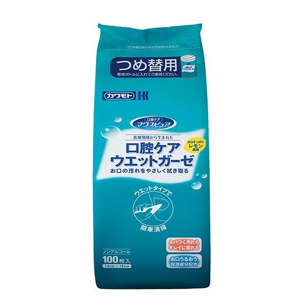 マウスピュア 口腔ケアウエットガーゼ 詰替用 100枚入 039-102451-00 川本産業 レモン風味 ノンアルコール