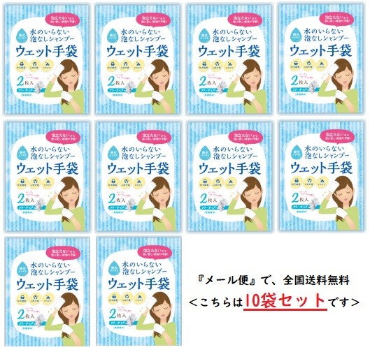 水のいらない泡なしシャンプー ウェット手袋 10袋セット 四国紙販売 メール便対象品 洗い流し・拭取り不要 防災備蓄 入院介護 アウトドア 長期保存 頭皮スッキリ