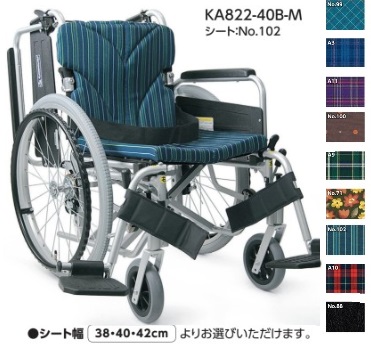 アルミ自走車いす KA822 -(38・40・42)B-M 中床タイプ 車輪22cm 座幅38cm・40cm・42cm 前座高43cm メーカー直送 非課税 カワムラサイクル