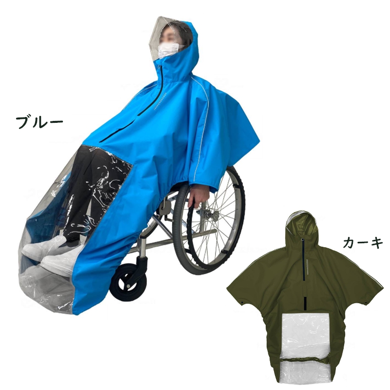 車いすレイン はおるっちゃ ポンチョタイプ KS-002 ブルー・カーキ 1点 フリーサイズ 弘進ゴム 車椅子用レインコート
