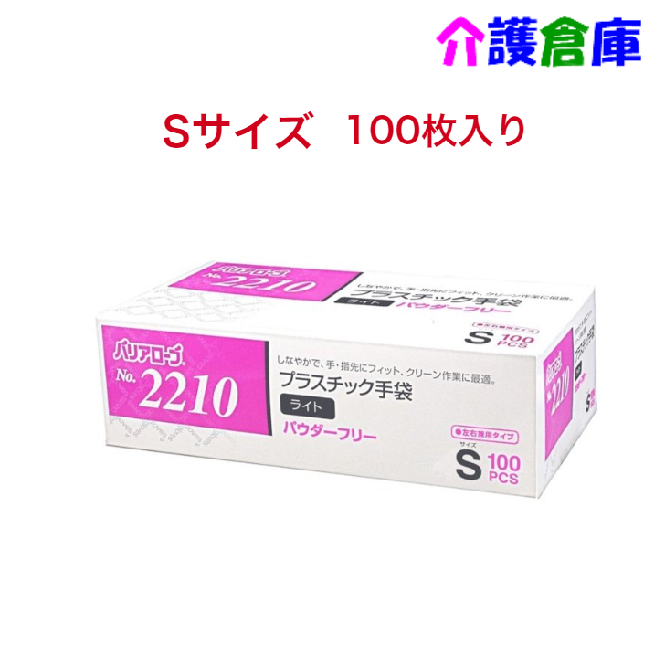 プラスチック手袋 No.2210 プラスチック手袋ライト パウダーフリー 粉なし Sサイズ 100枚入 1個 4540653221026
