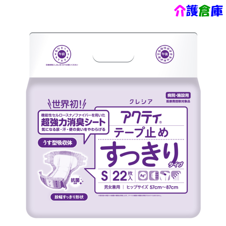 アクティ テープ止め すっきり S 22枚 1袋 テープタイプ 大人用紙おむつ 小さめ 日本製紙クレシア クレシア/4901750843502/84371