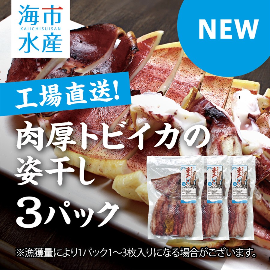 肉厚トビイカの姿干し 3パックセット(1パック/約250g〜300g。漁獲量により1パック、1枚から3枚入)【工場直送】