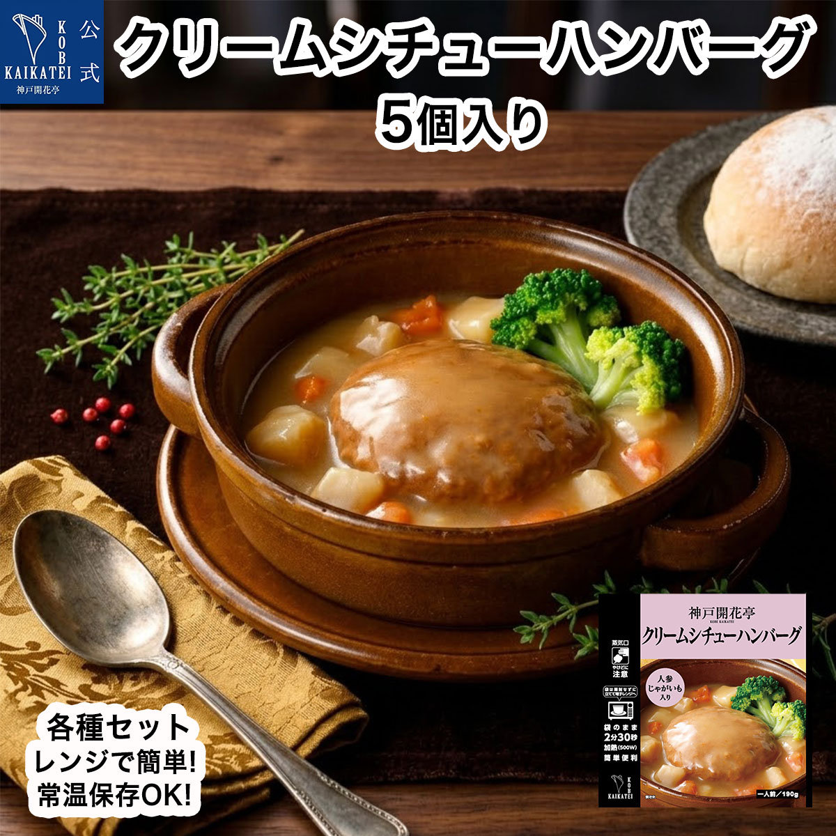 神戸開花亭がお届けする、温めるだけで楽しめるハンバーグ。