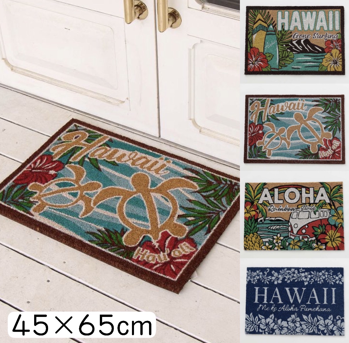 ハワイアン 屋外 玄関マット 45×65cm ハイビスカス ホヌ バス ワーゲン サーフ サーフィン ダイヤモンドヘッド ココヤシ 夏 人気 可愛い 屋外コイヤーマット
