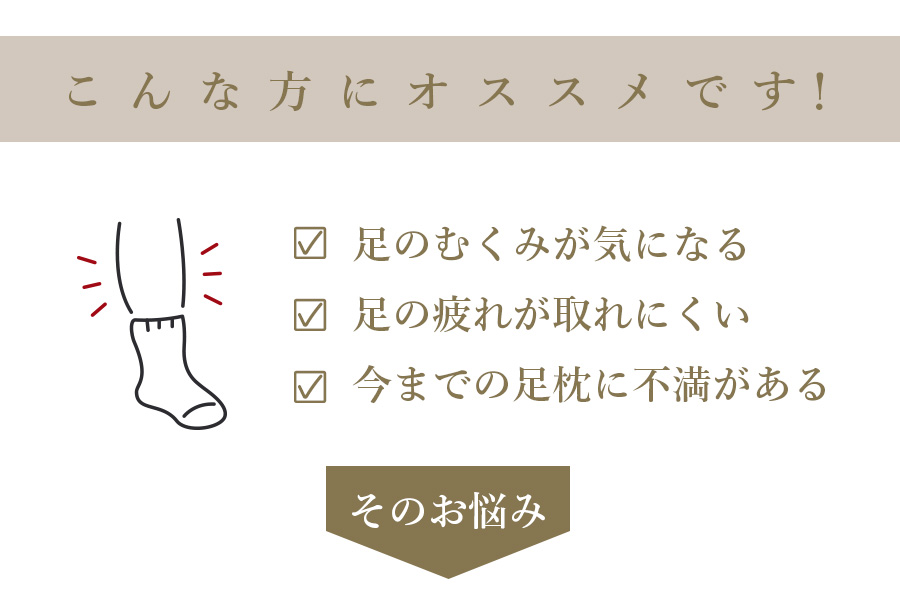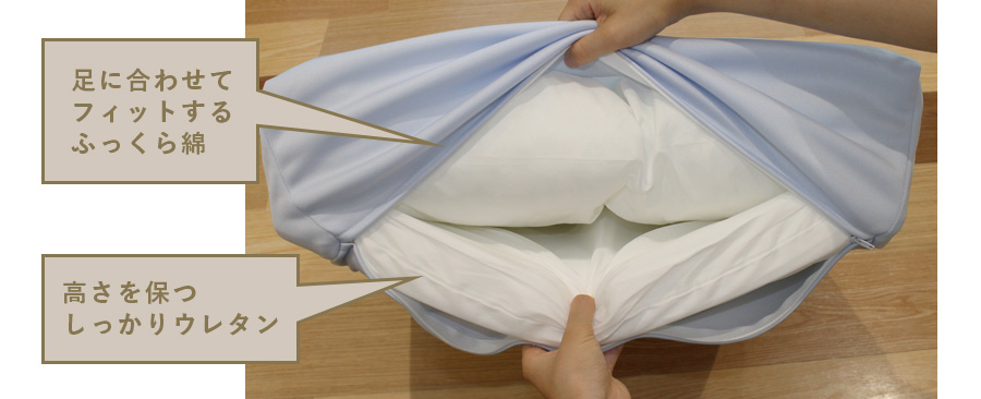 睡眠時やリラックスタイムに使用する、一日働いた足を癒す足枕です。