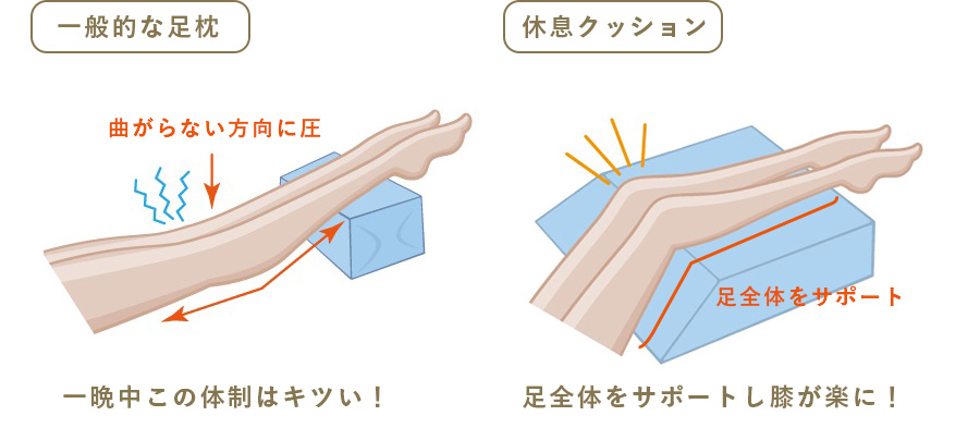 足先だけを乗せる足枕は宙に浮いた膝に負担がかかります。