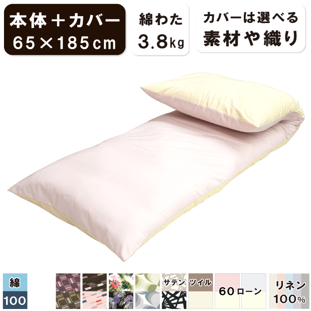 ごろ寝布団 カバー付き 65×185 綿わた使用 3.8キロ入り お昼寝 敷布団 長座布団 綿100% 和布団 敷き布団 キャンピングカー トラック