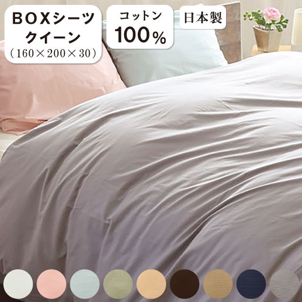 ボックスシーツ クイーンサイズ 160×200×30cm 日本製 綿100% BOXシーツ 防縮加工 ベッド用 マットレス用 マットレスカバー エスエルピーカバー
