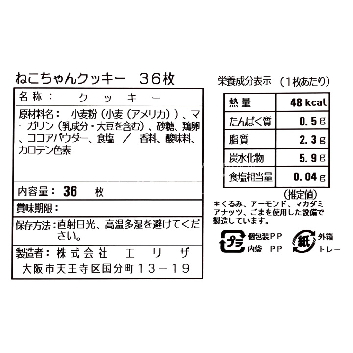ねこちゃん クッキー 個包装 36枚 ミルク ココア 風味 ネコ ねこ 猫