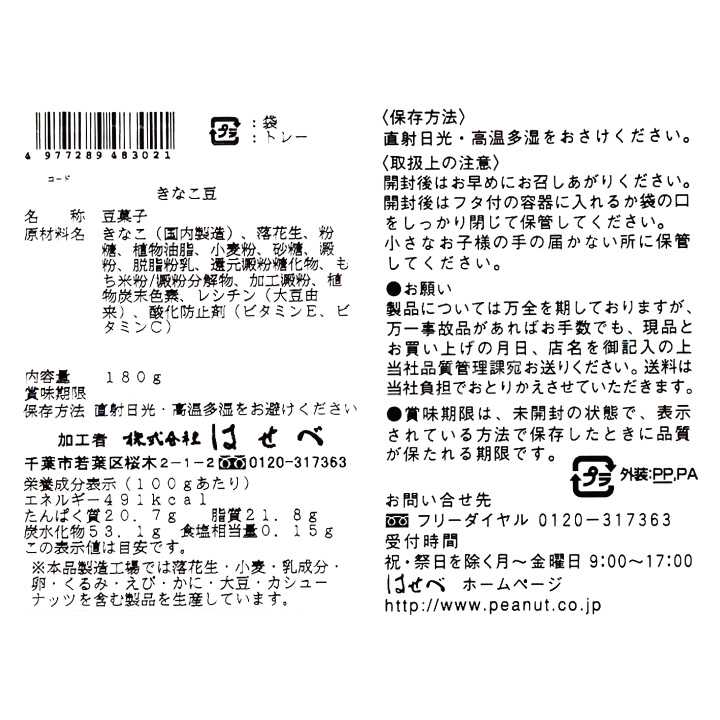 香ばしいきなこを落花生にたっぷりまぶしました。お茶うけにも、おつまみにもおすすめです。