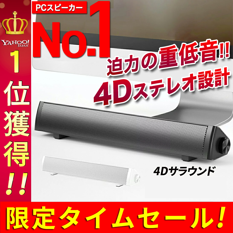 PCスピーカー サウンドバー 高音質 USB ステレオ 小型 コンパクト 大音量 スマホ パソコン オシャレ 高出力
