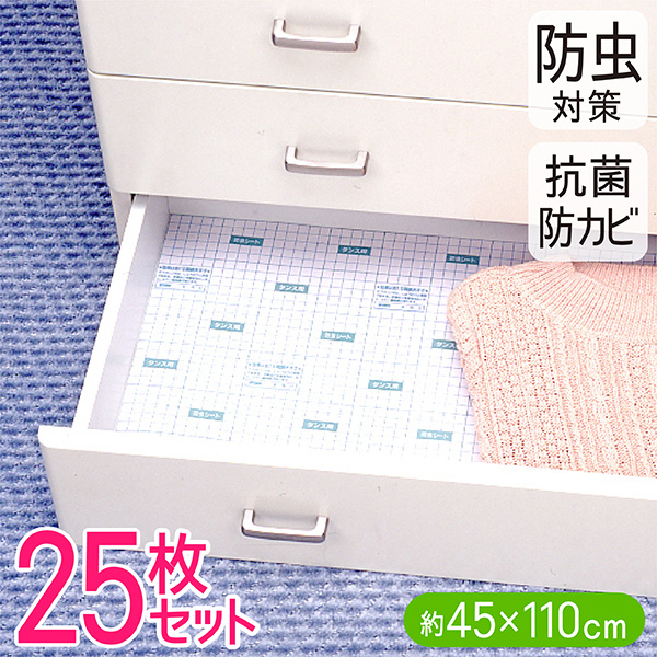 タンスシート 防虫 45×110cm 25枚セット 防虫シート 抗菌 防カビ タンス用 収納シート 引き出し 棚シート タンス 衣装ケース フリーカット 日本製 送料無料