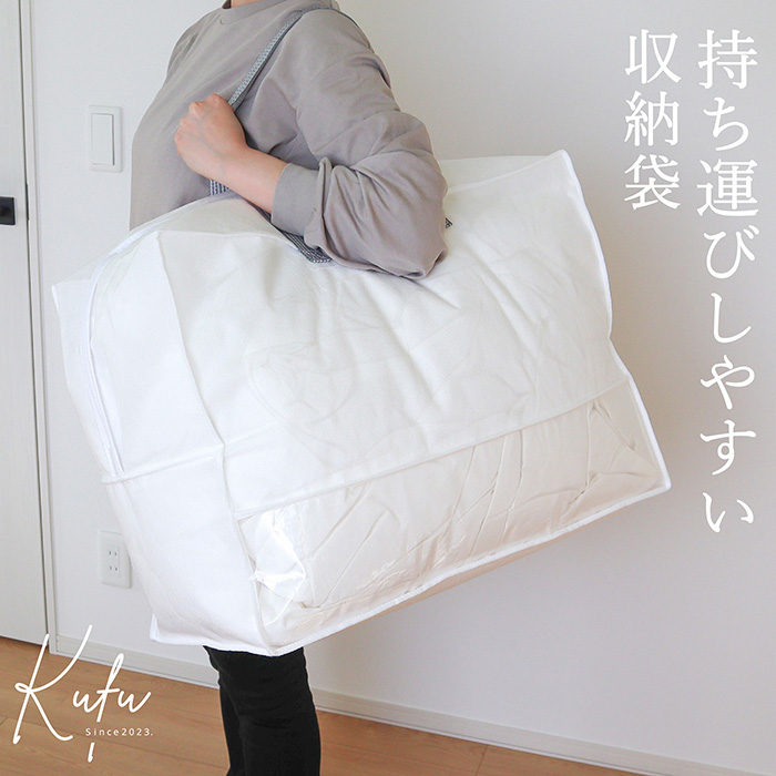 | ●肩にも掛けられる長めの持ち手で、持ち運びに便利な収納袋です。 ●クローゼットの棚上にもすっきり収納できます。 ●通気性が良い不織布を使用しているので、カビがつきにくく、やわらかい生地でやさしく保管できます。 ●クローゼットへの出し入れに便利な持ち手付きです。 ●ファスナーが大きく開くので、出し入れがしやすいです。 ●中身が見える透明窓付きです。 ●内側に防虫剤等が入れられるポケットが2ヶ所ついています。 ●使わないときはコンパクトに折りたためます。 |