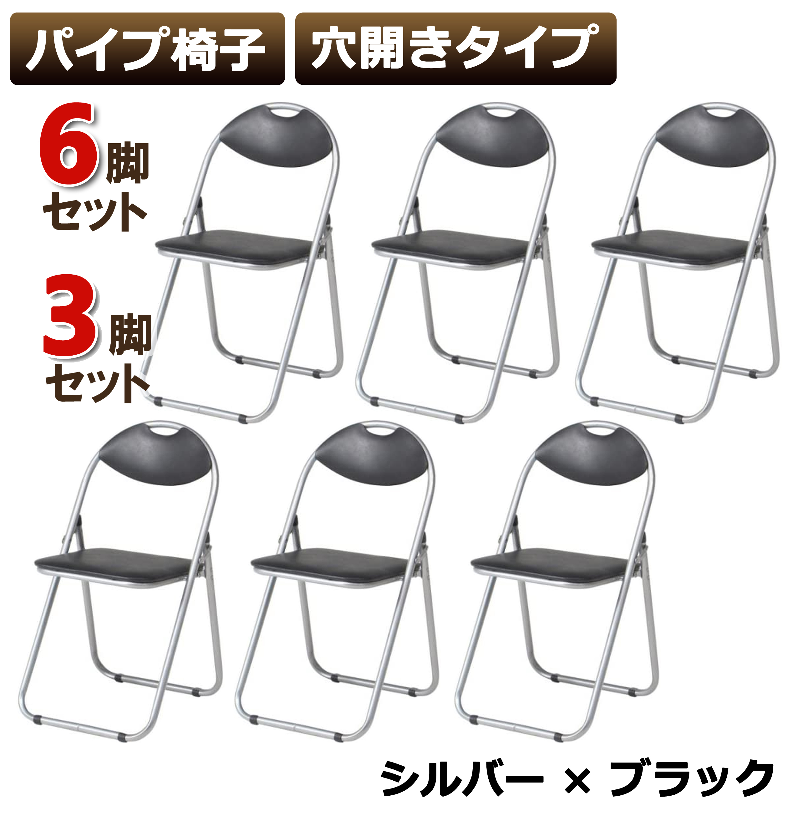 パイプ椅子 折りたたみ椅子 会議椅子 背もたれ穴あき シルバー ブラック 軽量3.3kg 耐荷重80kg 学校 会社 集会 事務所 イベント オフィス YSF-7361 穴あき S・BK