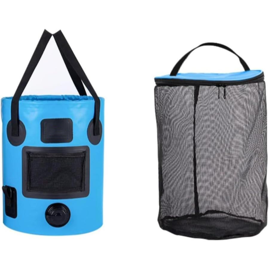 折りたたみバケツ キャンプ 大容量 アウトドア 内蔵メッシュネット 独立型 ポータブルバケツ 丸型 耐熱性 耐低温性 強力 ポータブル 釣りバケツ 洗車 野菜洗い 2