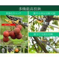 【3WAY機能付き】高枝切りばさみは三つ機能付きです。ハサミ切り:細枝が鋏刃で、簡単に剪定することができます。裾刃付き:直径20CM太枝を鋏で切れない場合では、裾刃で切ります。キャッチャー付き:地面から高枝みかん、林檎、ライチ、柿を摘むことができます