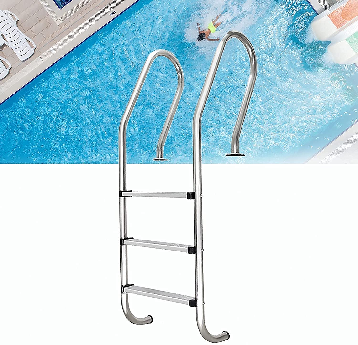 地下プールのはしご、3つの滑り止めのステップと手すりを備えたステンレス鋼のプールドック-便利で実用的