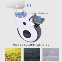 **3. 高い移動性と安全なブレーキシステム** この車椅子は、2つの360度回転可能なキャスターと2つの大きなソリッドホイールを備えています。前輪2つには