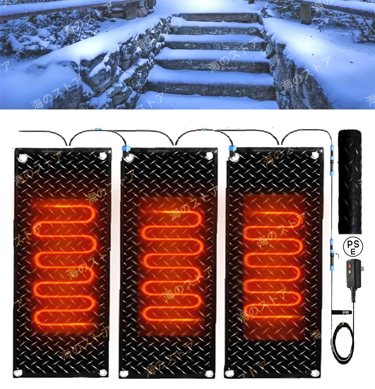 融雪マット 電気融雪ヒーター 1枚/2枚/3枚/4枚/5枚 玄関 ステップ道路 廊下 中庭用 6フィート電源コード付き歩道階段屋外ステップ、滑り止め私道歩道加熱屋