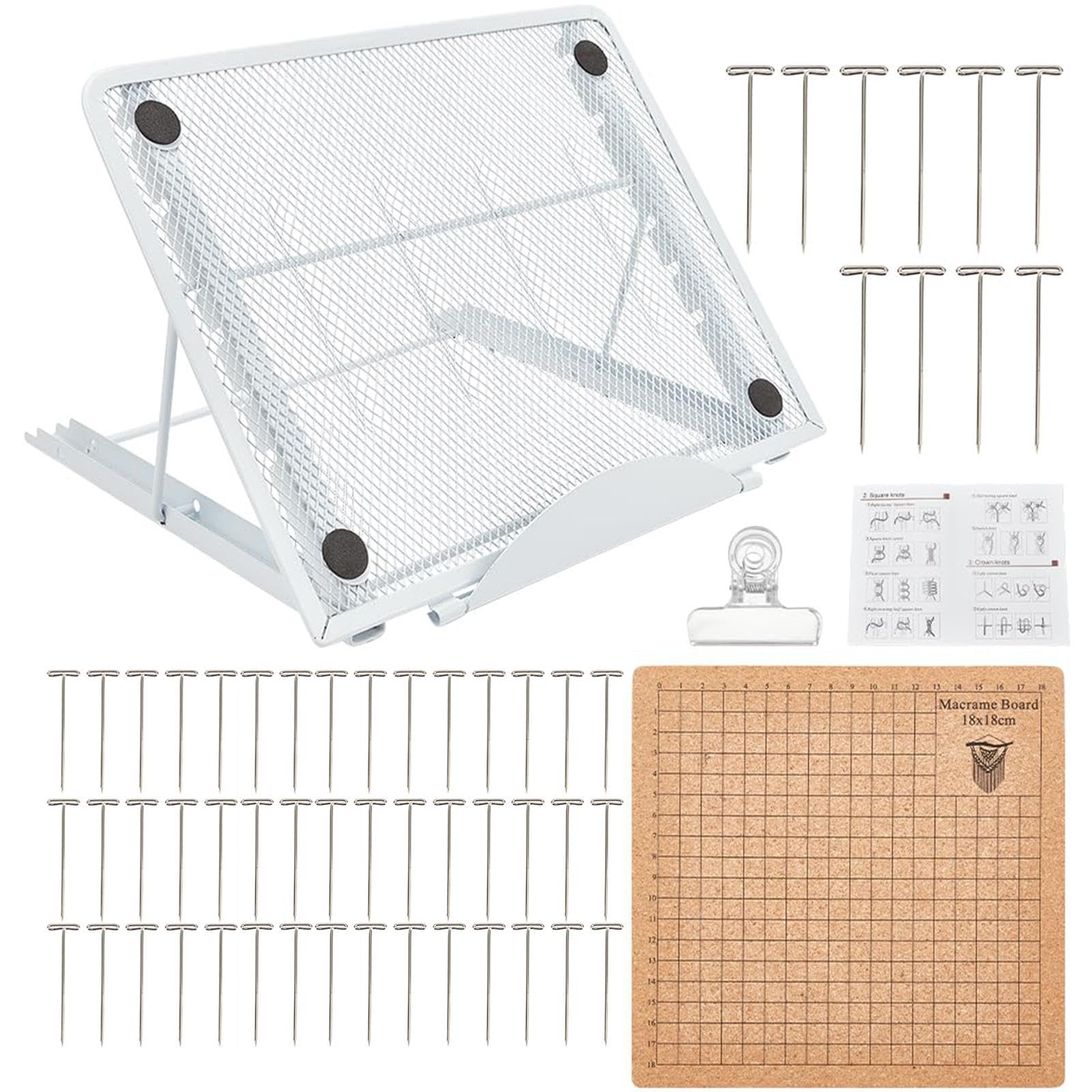 マクラメボードとスタンドキット、マクラメボードセット | マクラメ編みツール - かぎ針編みのブロッキング用ボード、コースター用の調節可能なスタンド、固定と