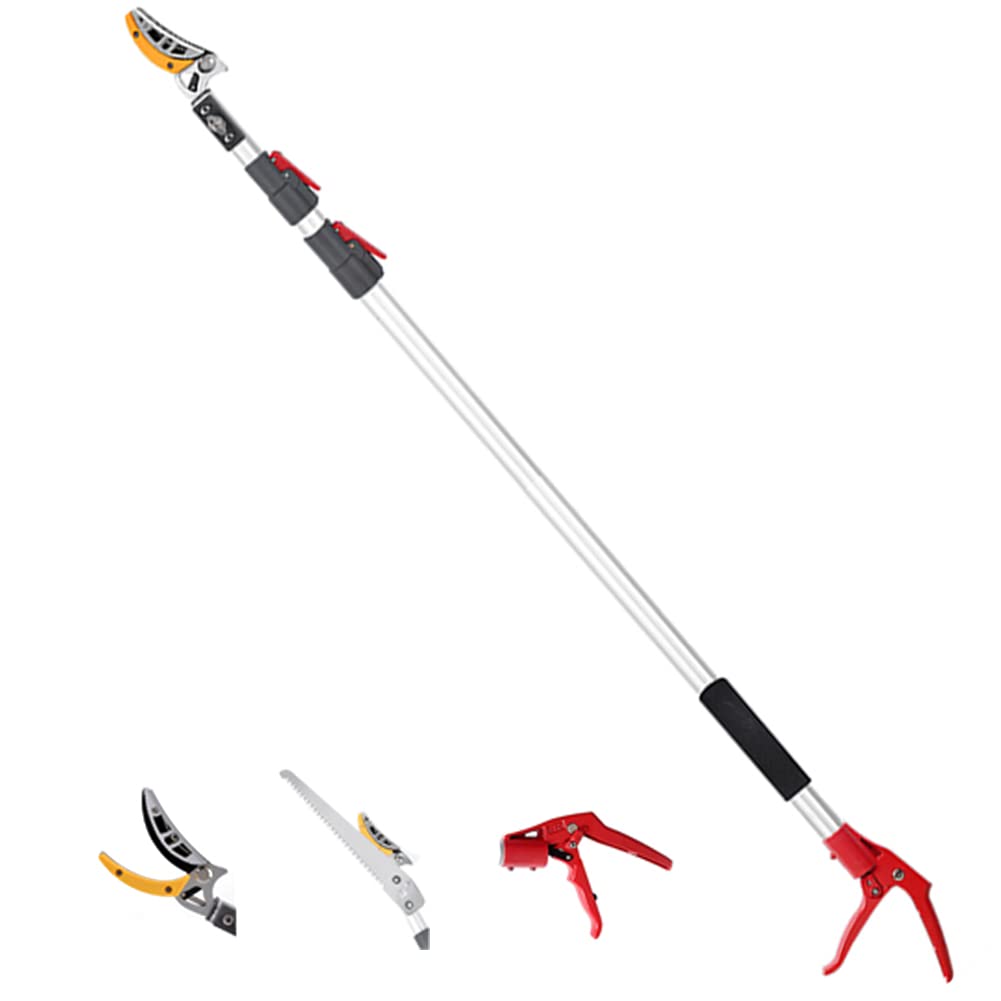 【伸縮式】3段階伸縮式で、最長5mまで伸ばすことができます、フルーツピッキング、家庭、果樹園、公園、庭園、高所の切断作業などに最適です。