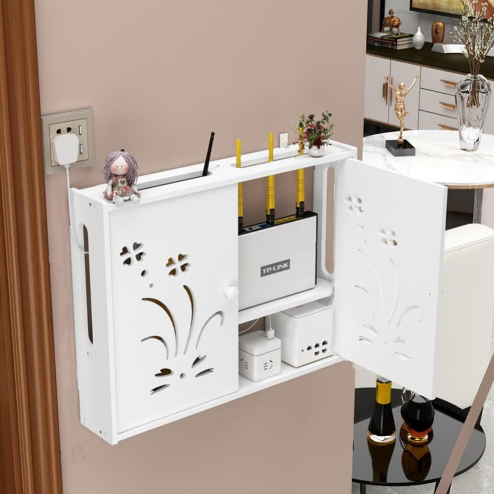 【美しく実用的】このルーターラックはルーターの保管に適しているだけでなく、非常に装飾的で、美しさとファッション性を加え、控えめでシンプルで、あらゆる家具に完璧にフィットします。