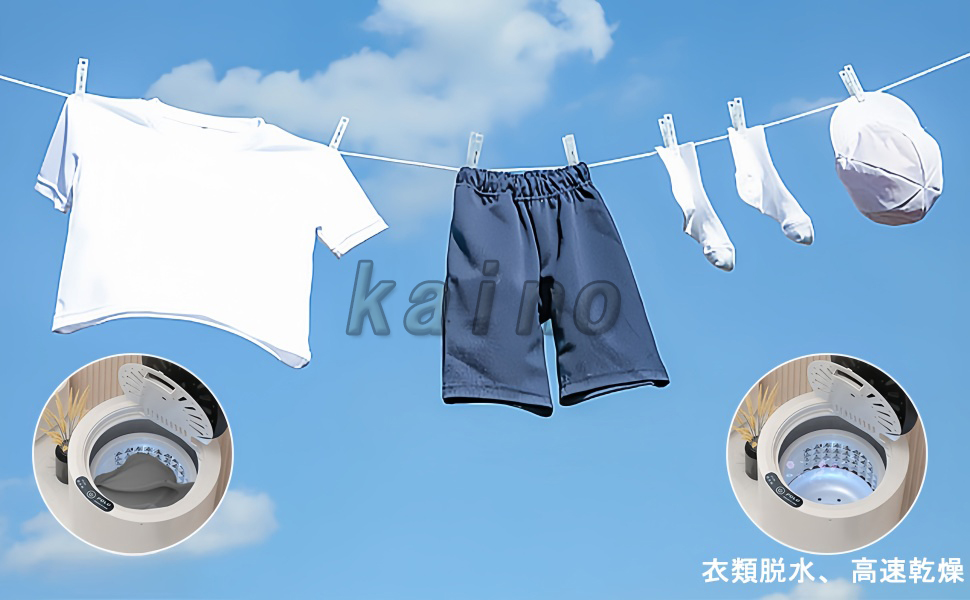 【高速脱水/強力脱水】高速脱水、わずか20秒で約9割りほどの乾燥が可能です。一回の脱水時間は最長5分です。強力脱水、最高速度は1300回転/分で達成!