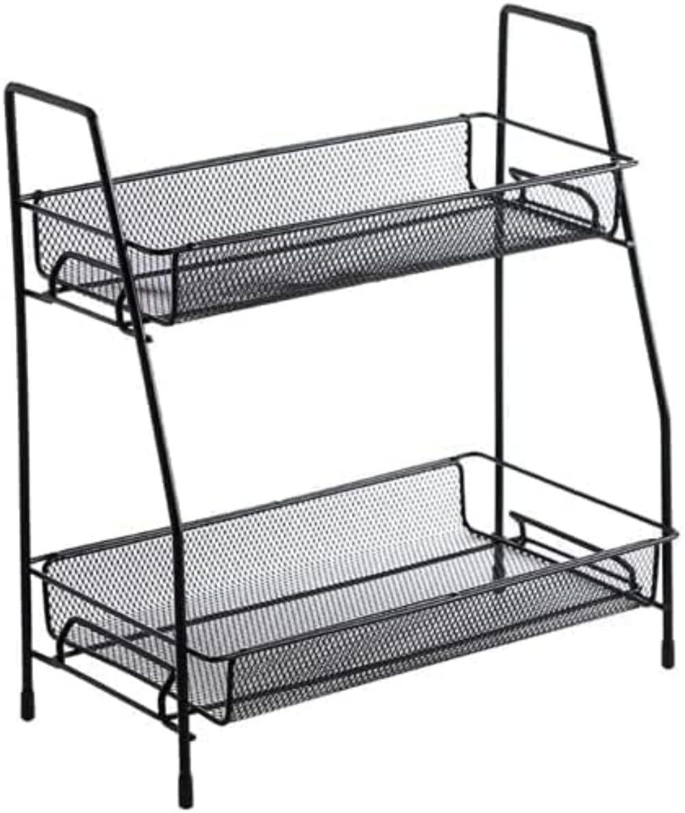 デスクトップ収納キッチン収納ラック ラック化粧品収納 家庭用取り外し可能2層錬鉄製ラックキッチンスパイスラックバスルーム2層仕上げラック (ブラック) [並行
