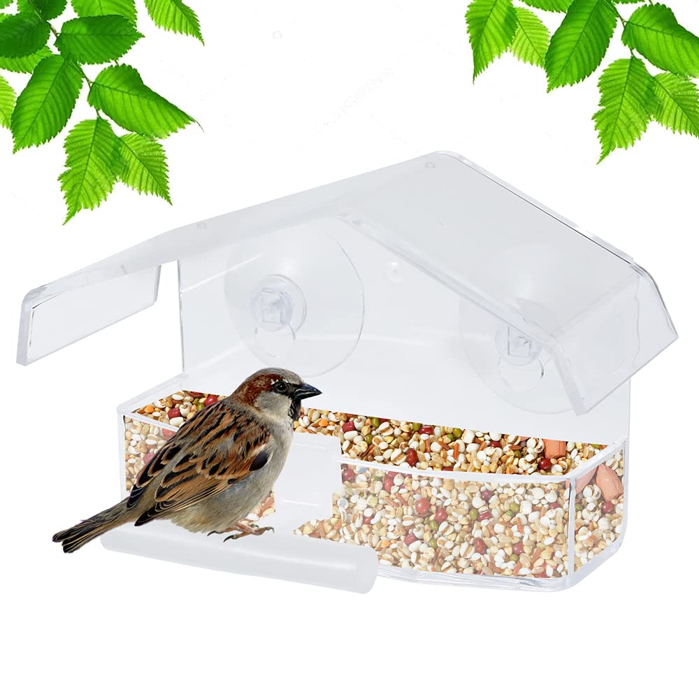 バードフィーダー 窓 吸盤式 透明 アクリル製 野鳥 餌台 止まり場付き 水入り 給餌器 餌場 えさ台 鳥の餌箱 小鳥 鳩 野鳥観察 おしゃれ 庭 ガーデン