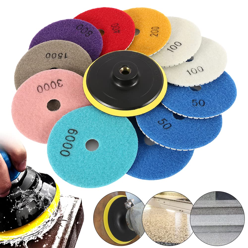 10cm ダイヤモンド研磨パッド 12点セット 石材研磨パッド ディスク 大理石 花崗岩用 石材 セラミック ガラス 研磨工具 磨き 耐摩耗性 高研削力 汎用 電動ポリッ