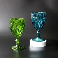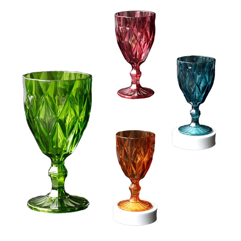 プラスチック製赤ワイングラス 4 個、330ml 模造ガラス製カラーゴブレット、レトロな菱形バーシャンパングラス
