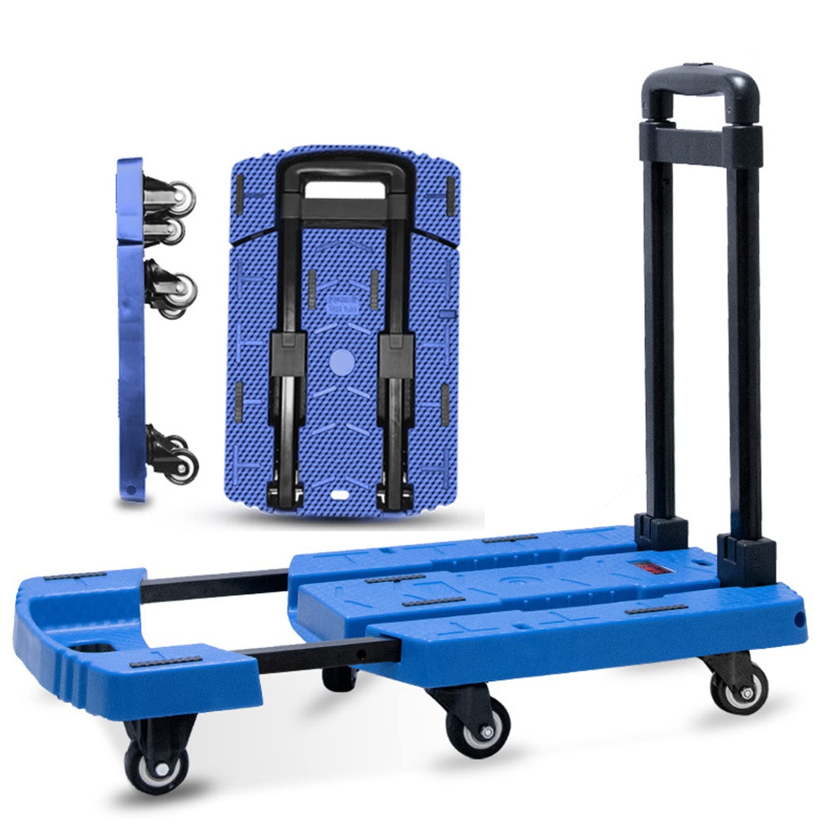 【折りたたみ式】3.5KGまで軽量。 折りたたんだサイズ:32x48x9.5cm /折りたたんでいないサイズ:60x104x32cm。 新しい折りたたみ技術のおかげで、トロリーは簡単に伸縮できます。 持ち運びが簡単で、車のトランク、ベッドボトム、キャビネットなどに簡単に収納できます。