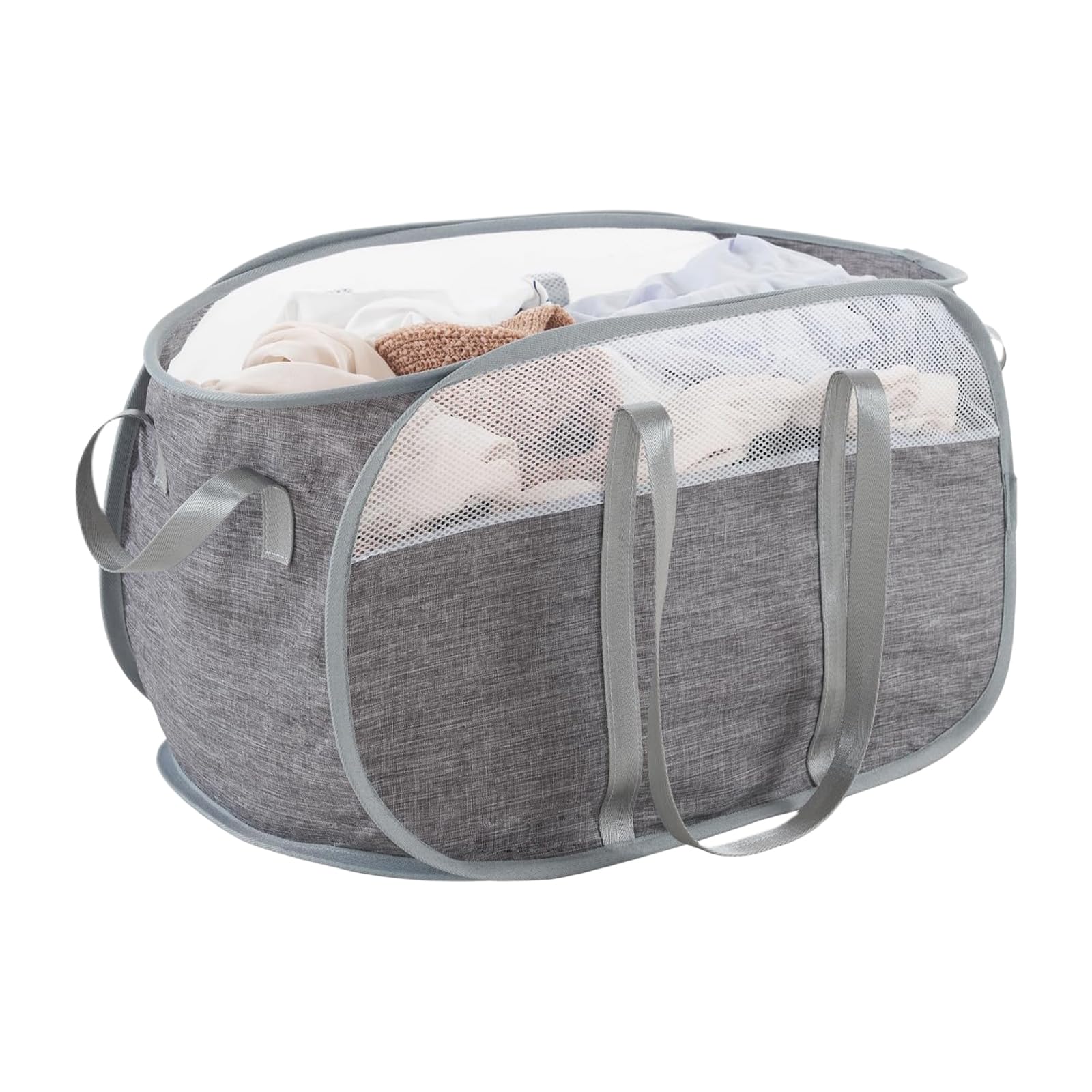 ランドリーバスケット 折りたたみ 大容量65L 洗濯かご ランドリーバッグ 横型 メッシュ 省スペース ハンドル付き 通気性 持ち運び可能 衣類収納 便利 丈夫 軽量
