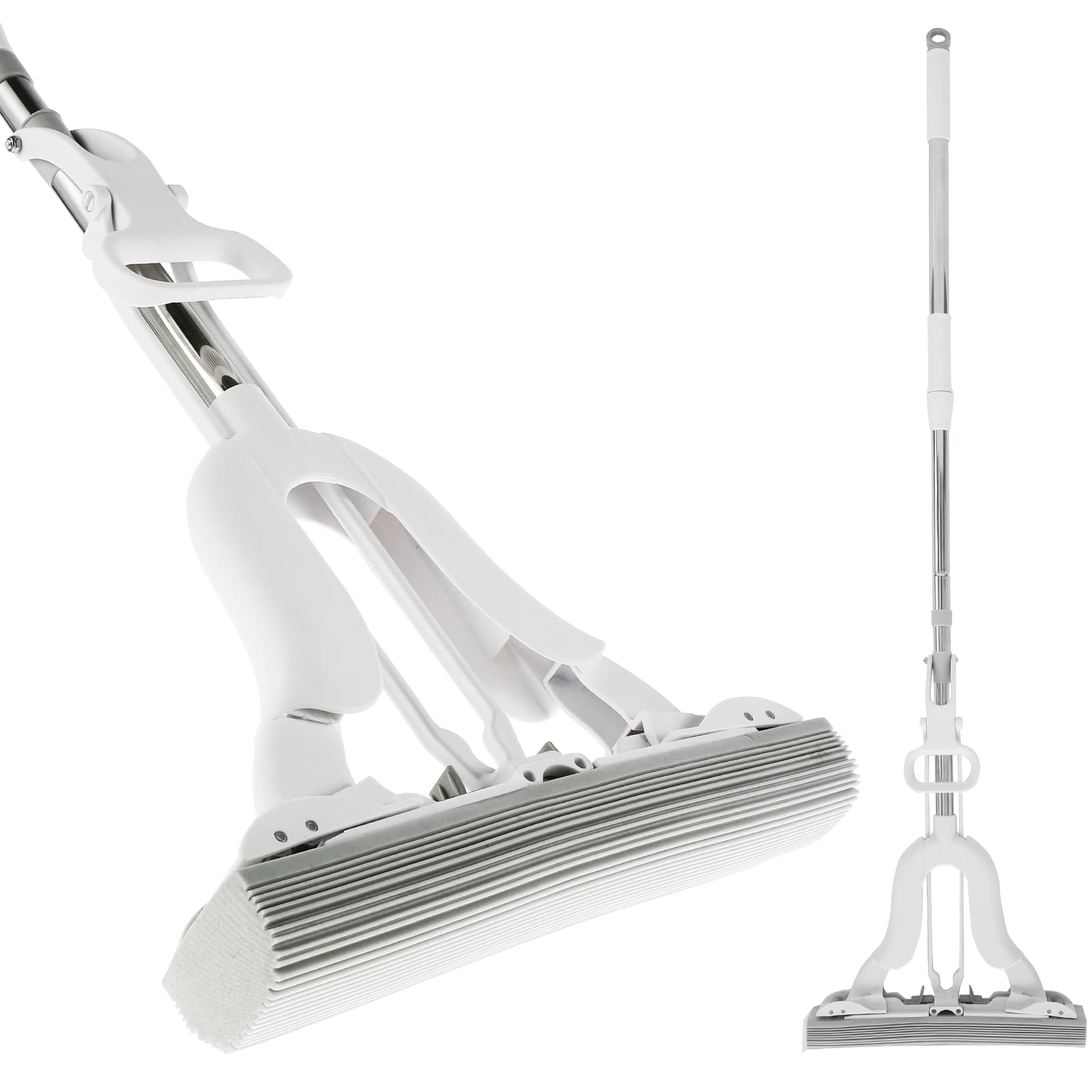 【高品質素材】このスポンジモップは高品質のPP、ステンレス鋼、ゴムスポンジ(PVA)などの素材で作られており、洗浄効率が高くなります。 使いやすく、掃除が早く、軽量で耐久性があり、安全で無臭です。