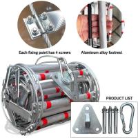 【素材】当社の避難はしごは、スチールワイヤーロープとアルミニウム合金管で作られています。スチールワイヤーロープは直径6mmで難燃性があり、最大500kgの耐荷重を備えています。40cmごとに滑り止めコーティングが施されたアルミ合金製のステップロッドが付いています。サイズは3mから50mまでご用意しており、2階から10階まで対応可能です。