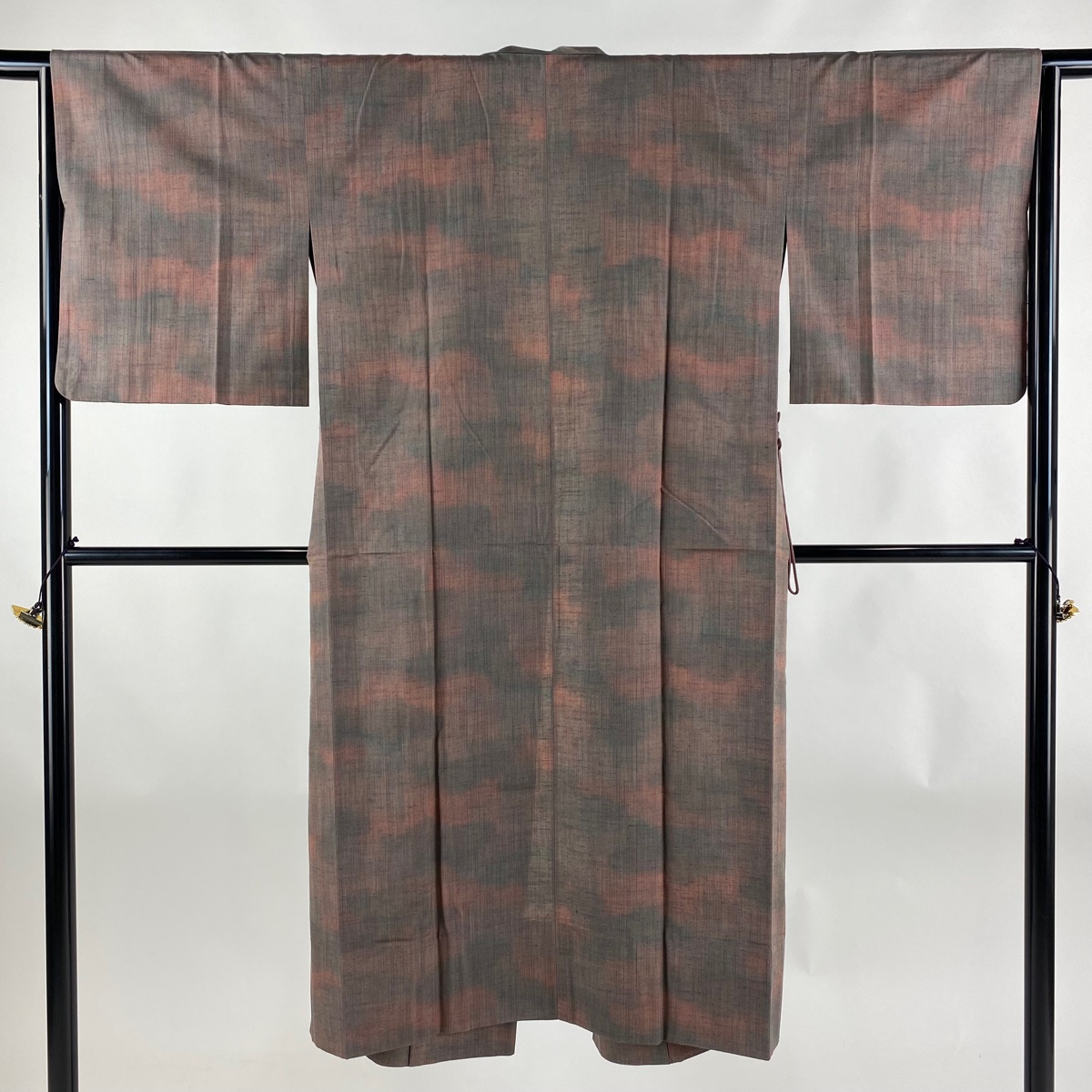 道中着 身丈129.5cm 裄丈64.5cm M 和装コート 紬地 縞 ぼかし 茜色 正絹 美品 名品 中古 在庫一掃