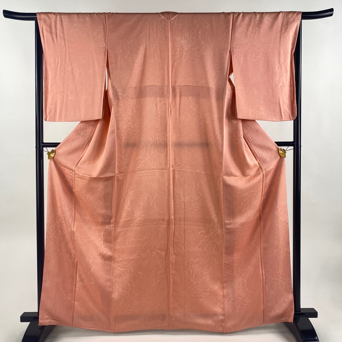 小紋 身丈165cm 裄丈67cm M 袷 草花 ぼかし サーモンピンク 正絹 優品 中古 在庫一掃