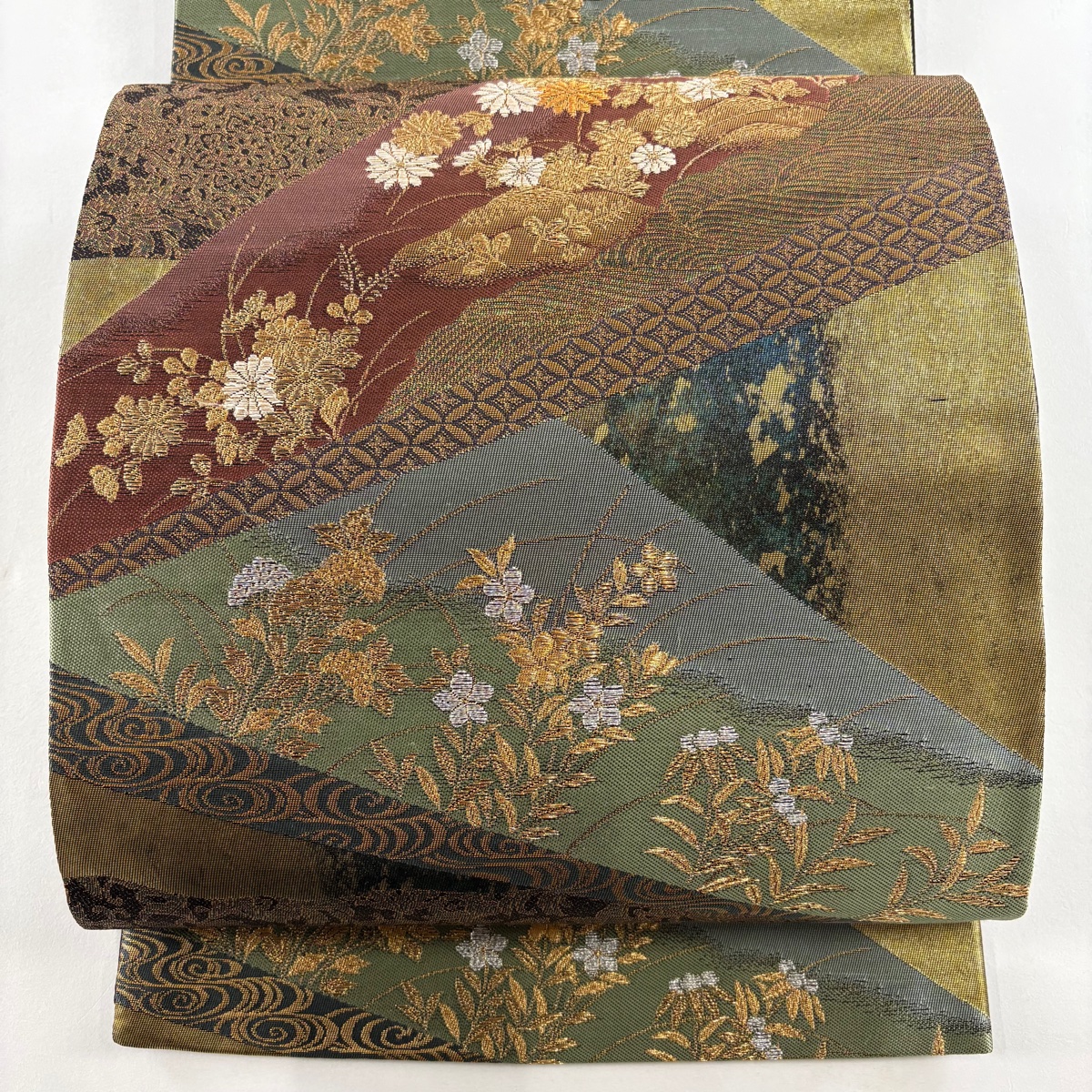 袋帯 美品 秀品 松竹梅 波 金銀糸 箔 赤茶 六通 正絹 中古 在庫一掃