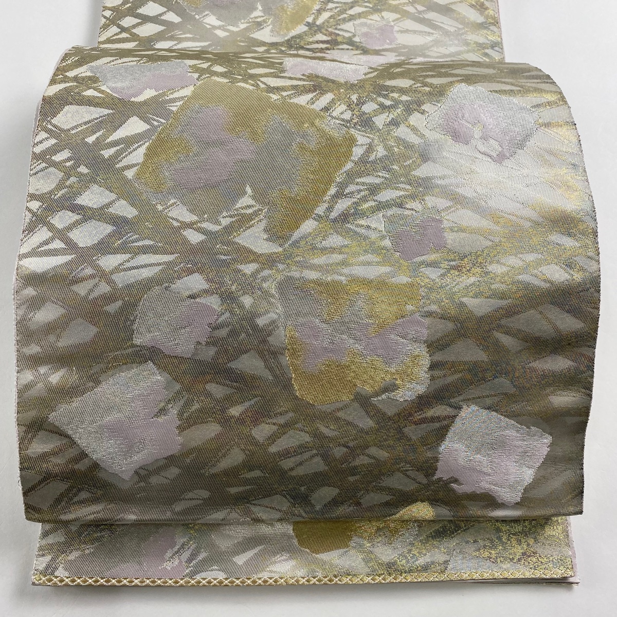 袋帯 美品 秀品 関西仕立て 破れ色紙 芝 金銀糸 灰色 六通 正絹 中古 在庫一掃