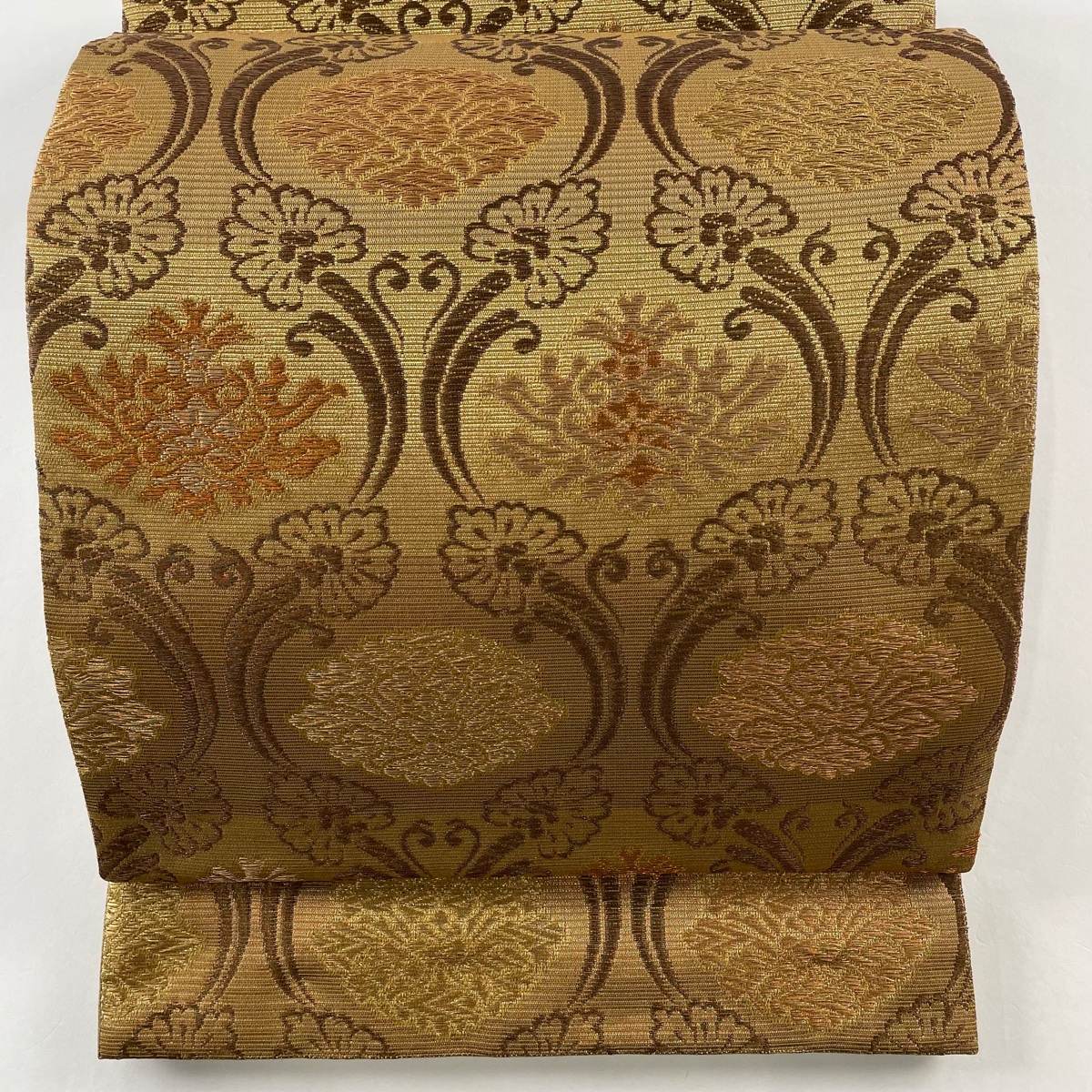 袋帯 美品 秀品 華文 幾何学模様 箔 金糸 金茶 六通 正絹 中古 在庫一掃