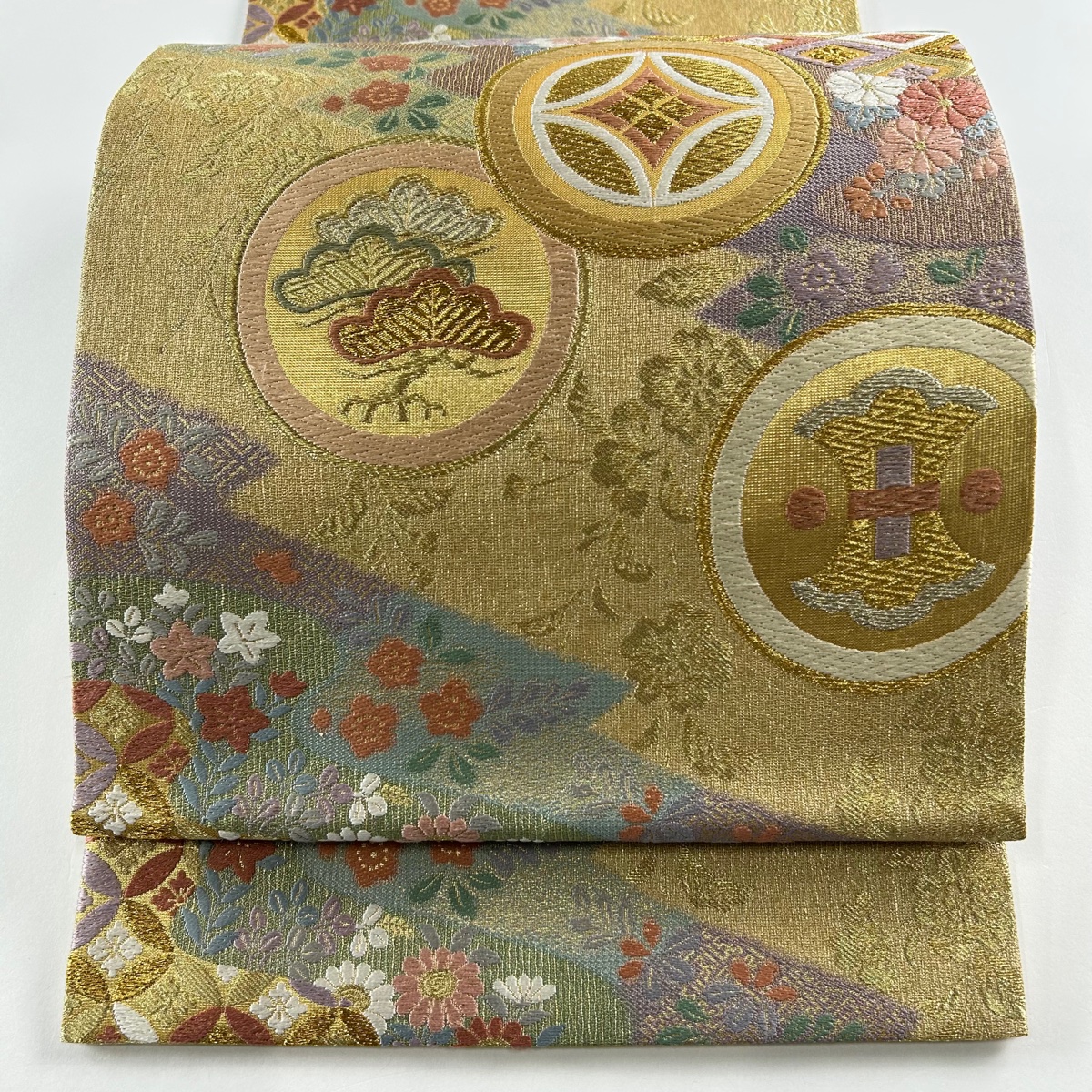 袋帯 美品 秀品 七宝 笠松 唐織 箔 金色 六通 正絹 中古 在庫一掃