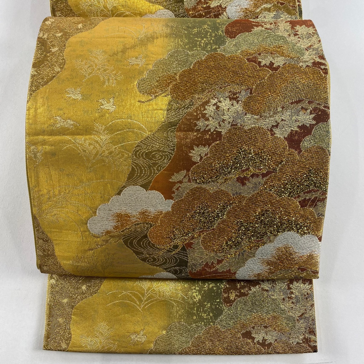 袋帯 秀品 笠松 草花 金銀糸 箔 金色 六通 正絹 中古 在庫一掃