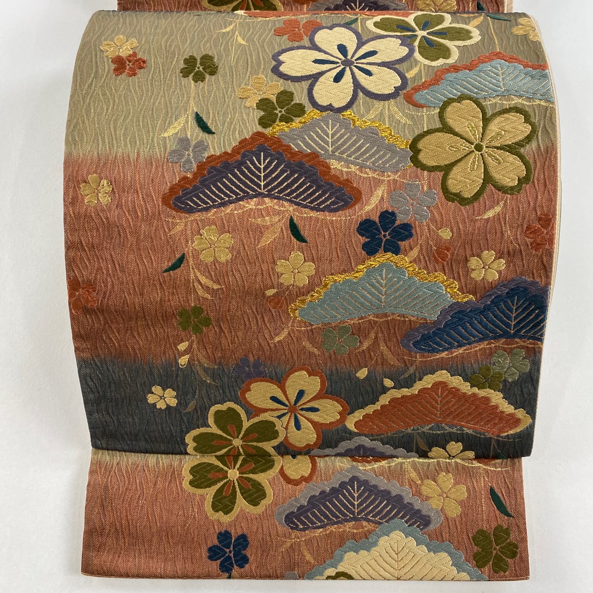 袋帯 秀品 笠松 桜 唐織 箔 赤茶 全通 正絹 中古 在庫一掃