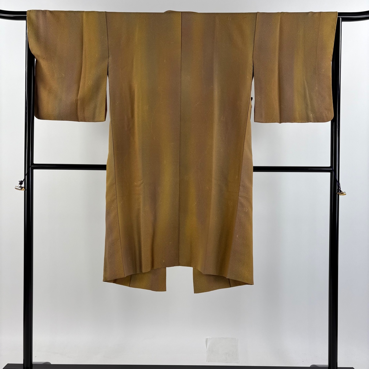 道中着 身丈113cm 裄丈65cm M 和装コート 着物衿 草花 ぼかし 黄土色 正絹 美品 逸品 中古 在庫一掃