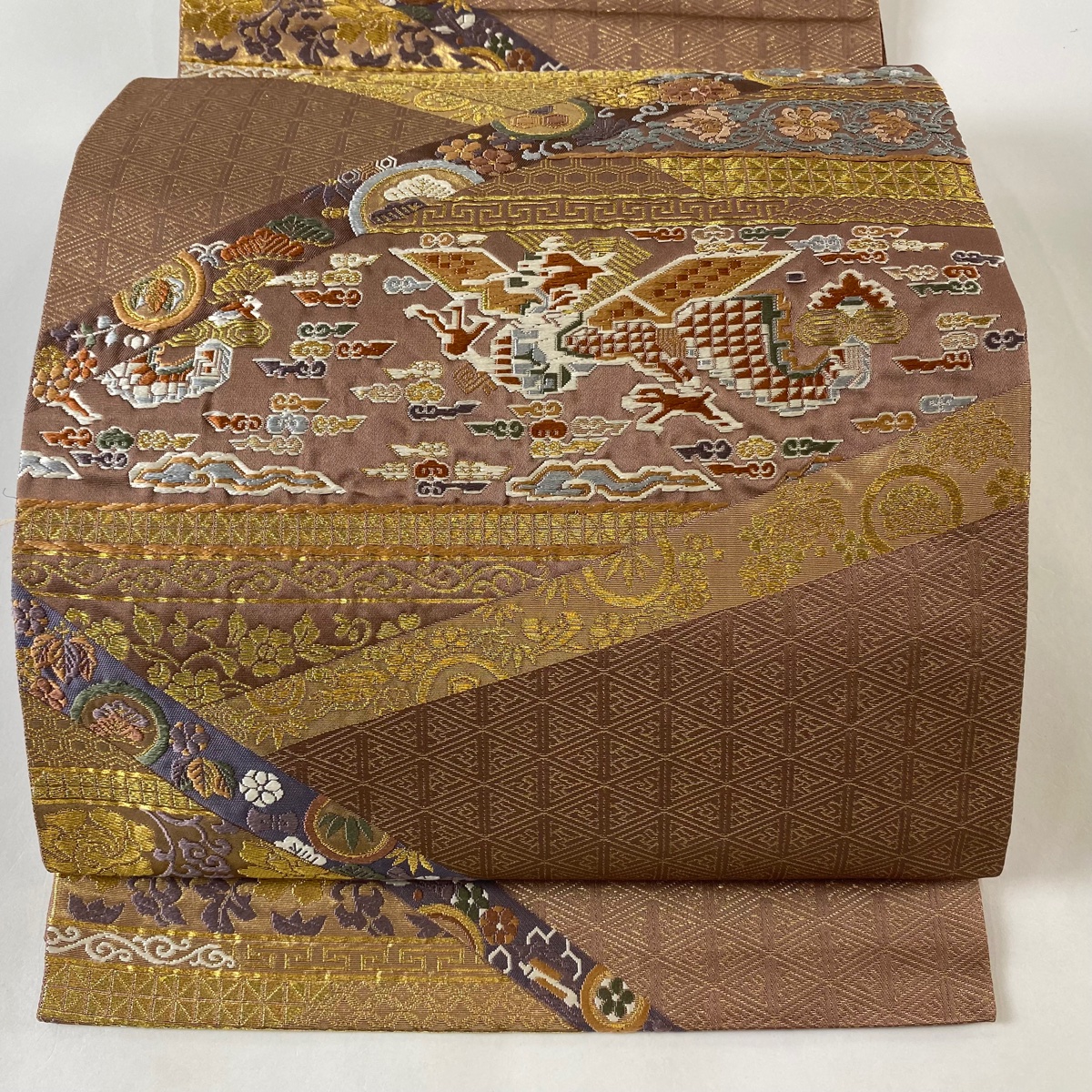袋帯 秀品 華文 松竹梅 箔 刺繍 小豆色 六通 正絹 中古 在庫一掃